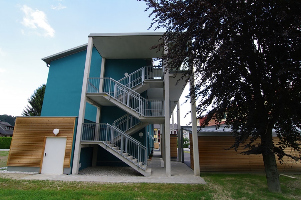 Auf einem beengten Restgrundstück wurde dieser Neubau als 3 geschossiger Holzbau im Zentrum der Gemeinde Krottendorf geplant. Das Projekt wurde in Holzriegelbauweise mit Holzriegelwänden und Holztramdecken ausgeführt. Zur Erschließung wurde eine nordseitig freistehenden Laubenganglösung aus Brandschutzgründen mit Stahlbetonfertigteilen errichtet. Die 4 Maisonette Wohnungen erstrecken sich über das Erd- und 1. Obergeschoß und weisen jeweils Eigengärten auf. Im 2. Obergeschoß wurden vier 2-Zimmerwohnungen mit Balkon ausgeführt.
